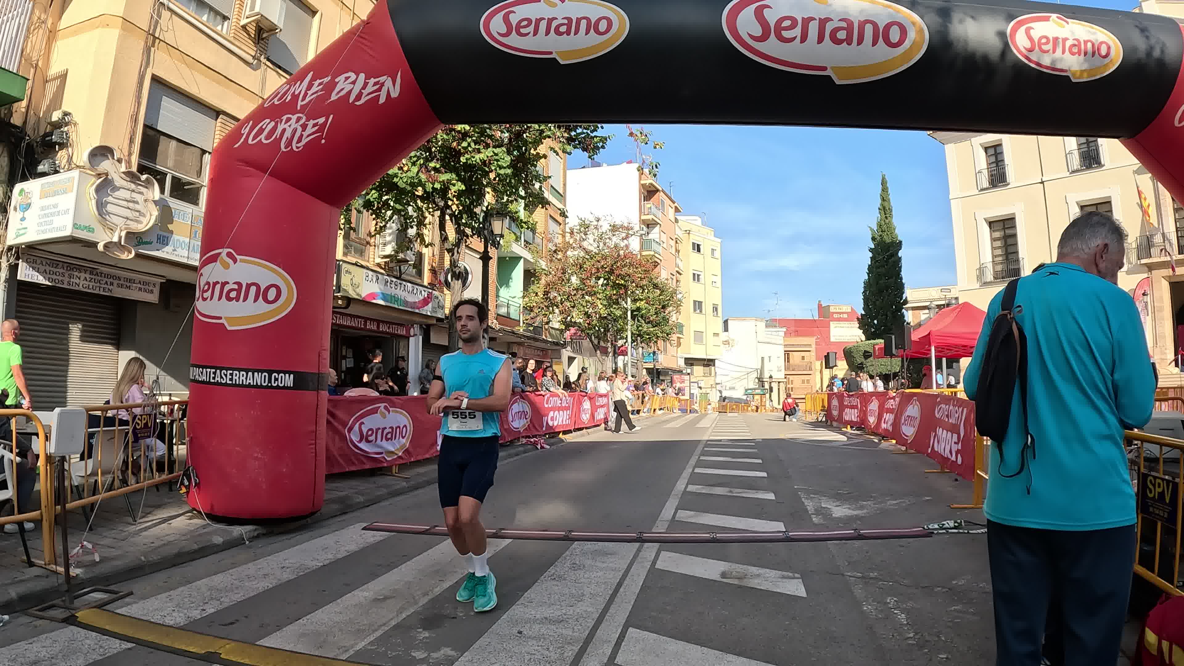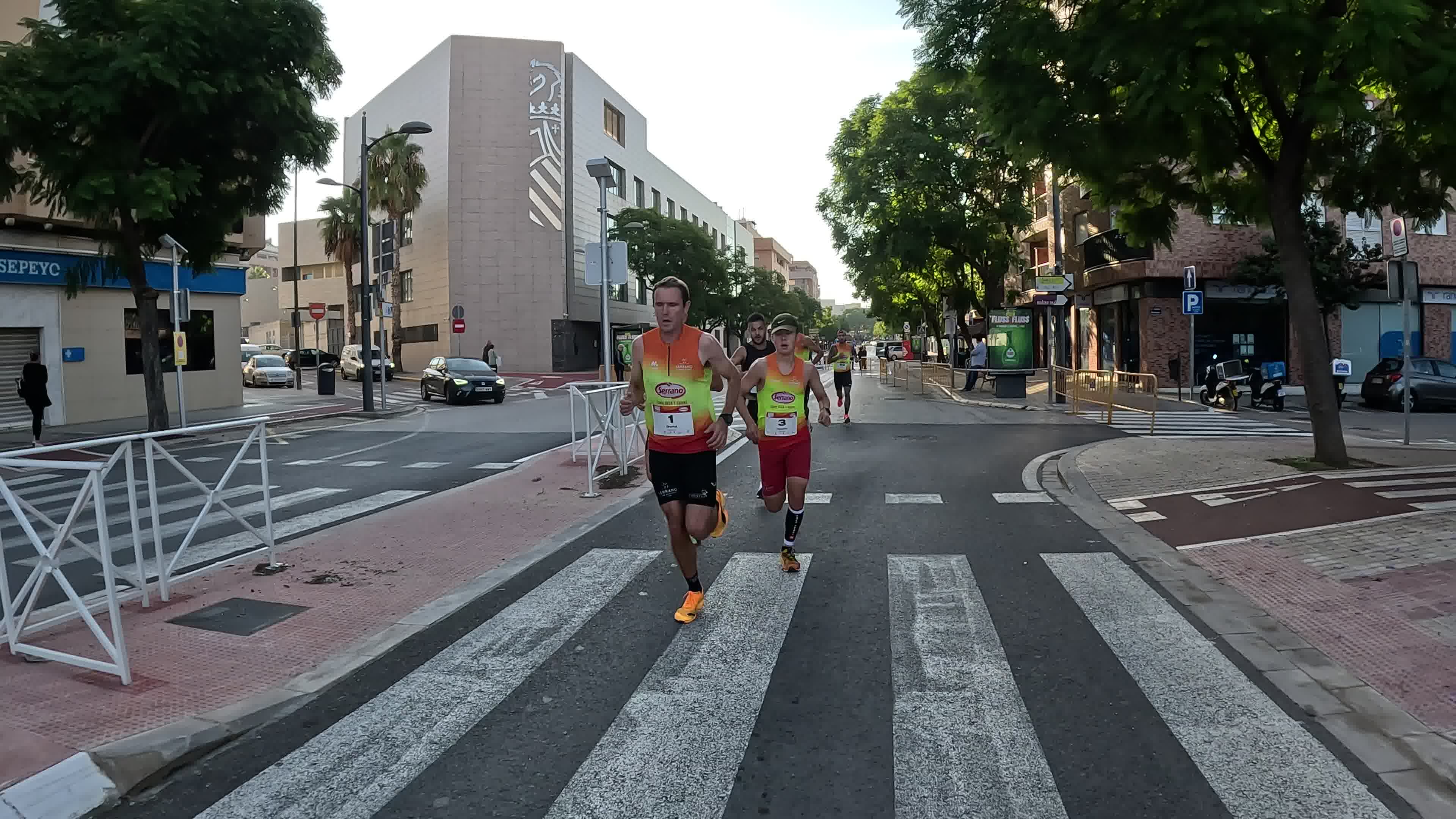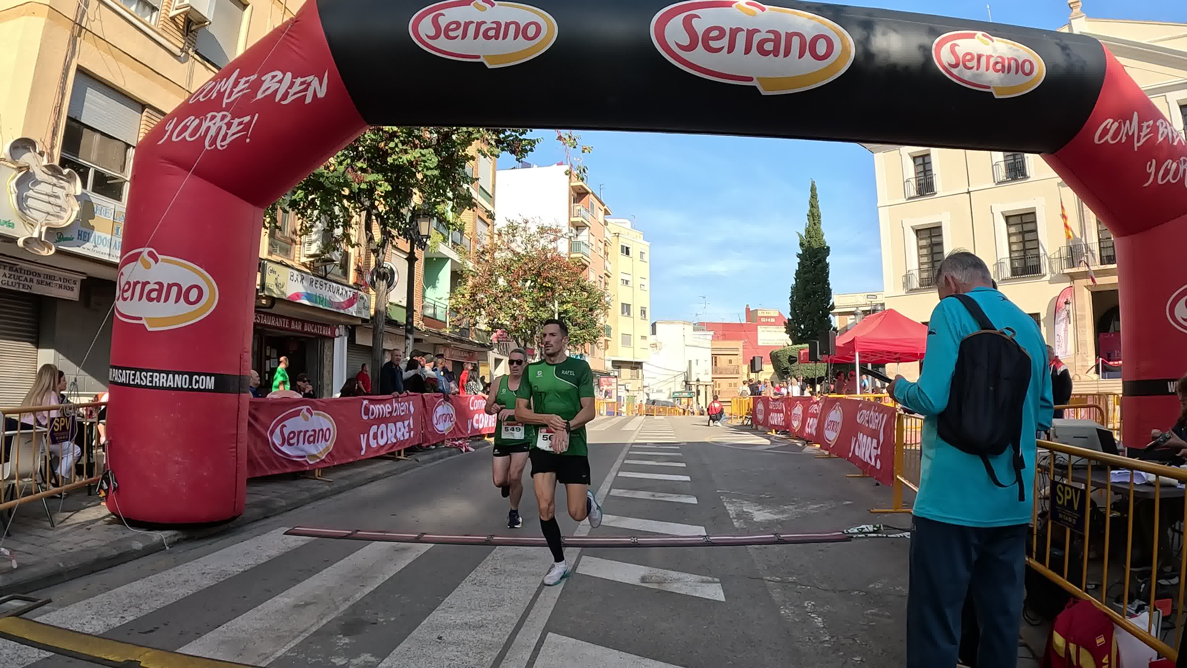Las fotos del podio recogen el momento de la victoria: Elia y Nacho, ambos del Serrano Atletismo, celebran su triunfo en la prueba. Incluimos imágenes del abrazo.